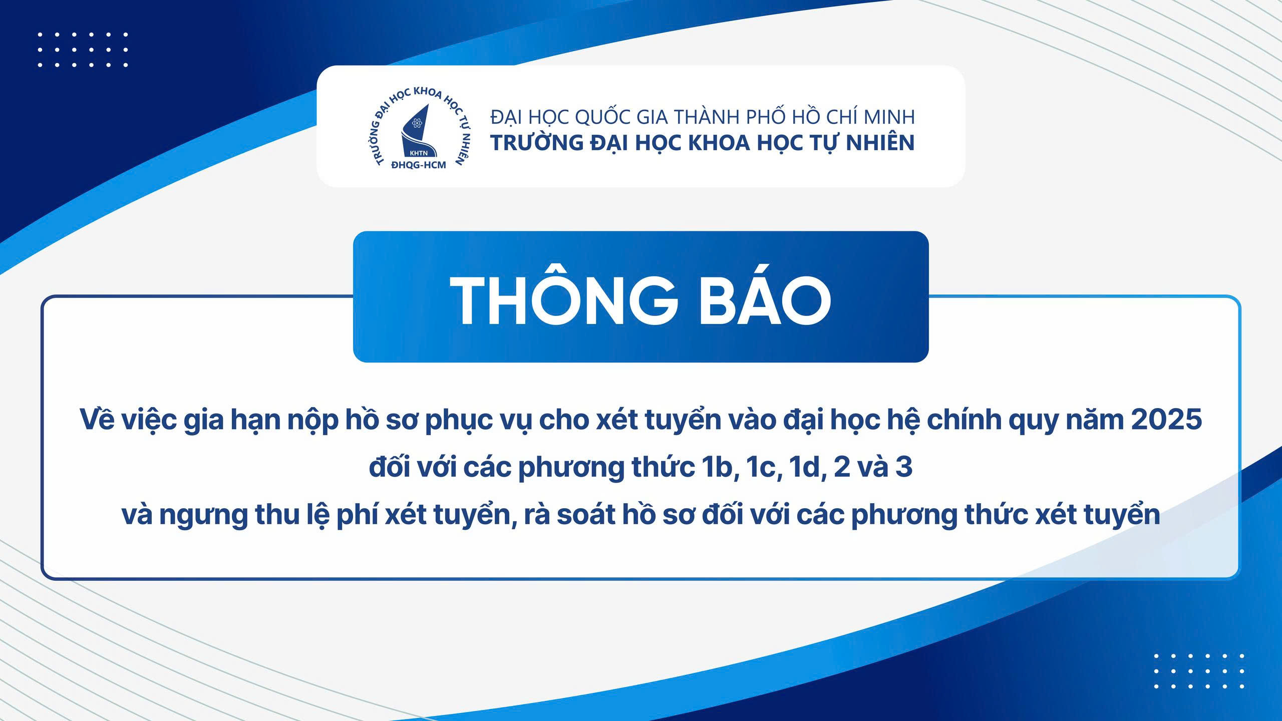 Hội đồng tuyển sinh Trường Đại học Khoa học tự nhiên, ĐHQG-HCM thông báo đến các thí sinh đã nộp hồ sơ theo các thông báo của phương thức 1b, phương thức 1c, phương thức 1d, phương thức